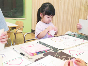 マジックペンを使うことはあまり慣れていないので、緊張した面持ちで丸く黒く塗ることに集中していました。